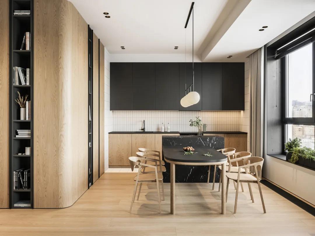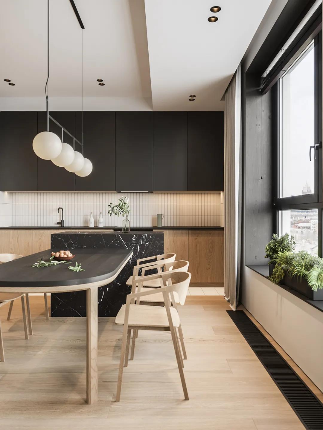客廳和餐廳、廚房融為一體,設(shè)計(jì)師利用家具來為這些空間做清晰的劃分。包括運(yùn)用瓷磚和木板作為分界點(diǎn)來隔開廚房和餐廳之間的具體,這樣既有條理也富有設(shè)計(jì)感。
