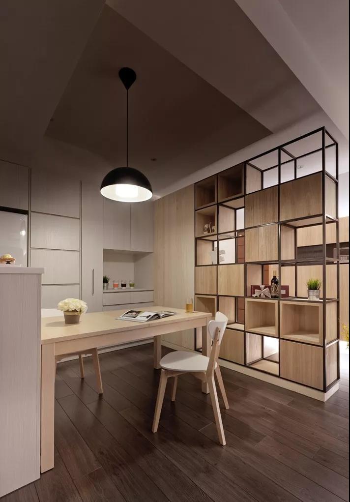 如果你想對餐廳一側(cè)進行遮擋,也可以在大門的地方設(shè)置一個玄關(guān)隔斷,起到保護隱私與美化裝飾的雙重效果。
