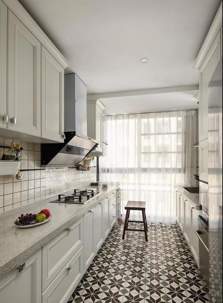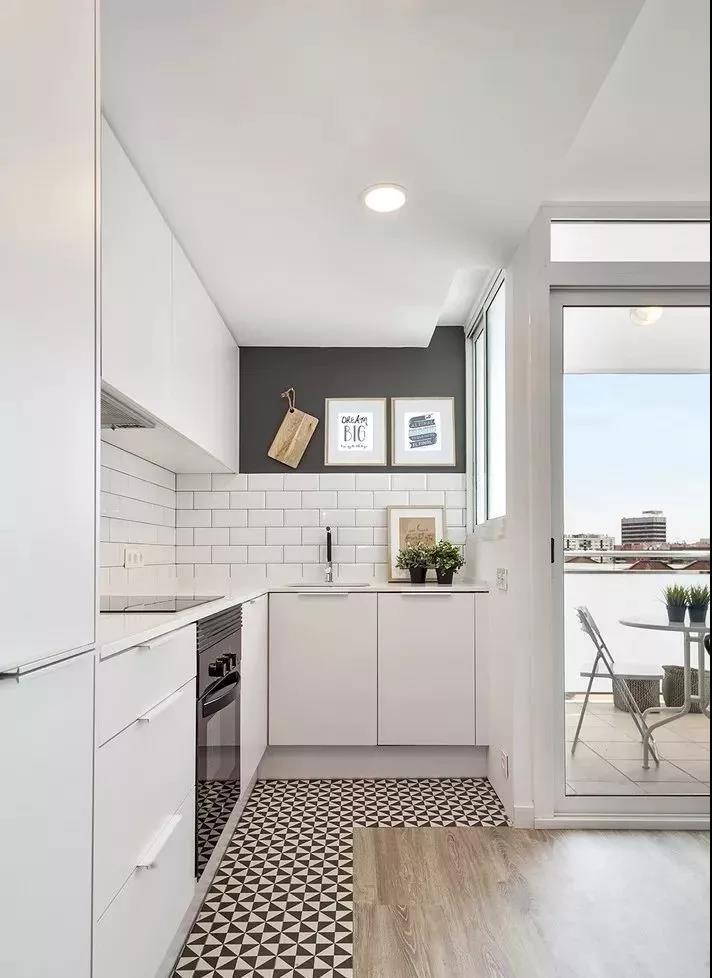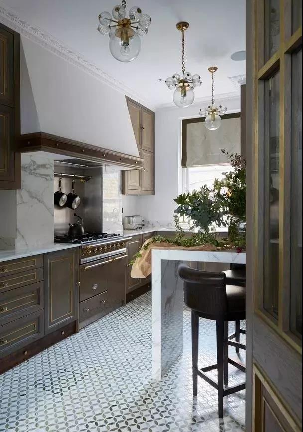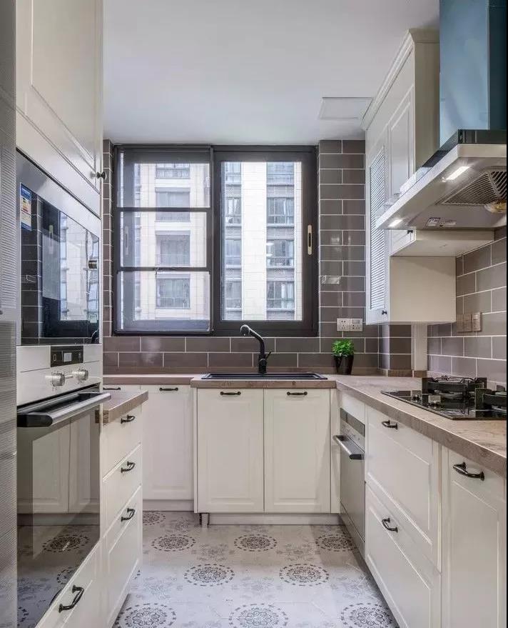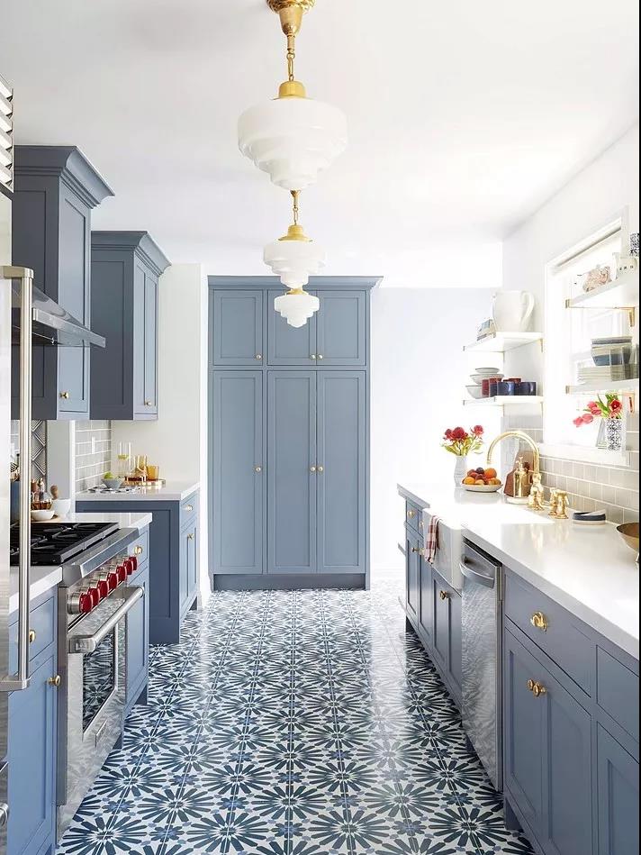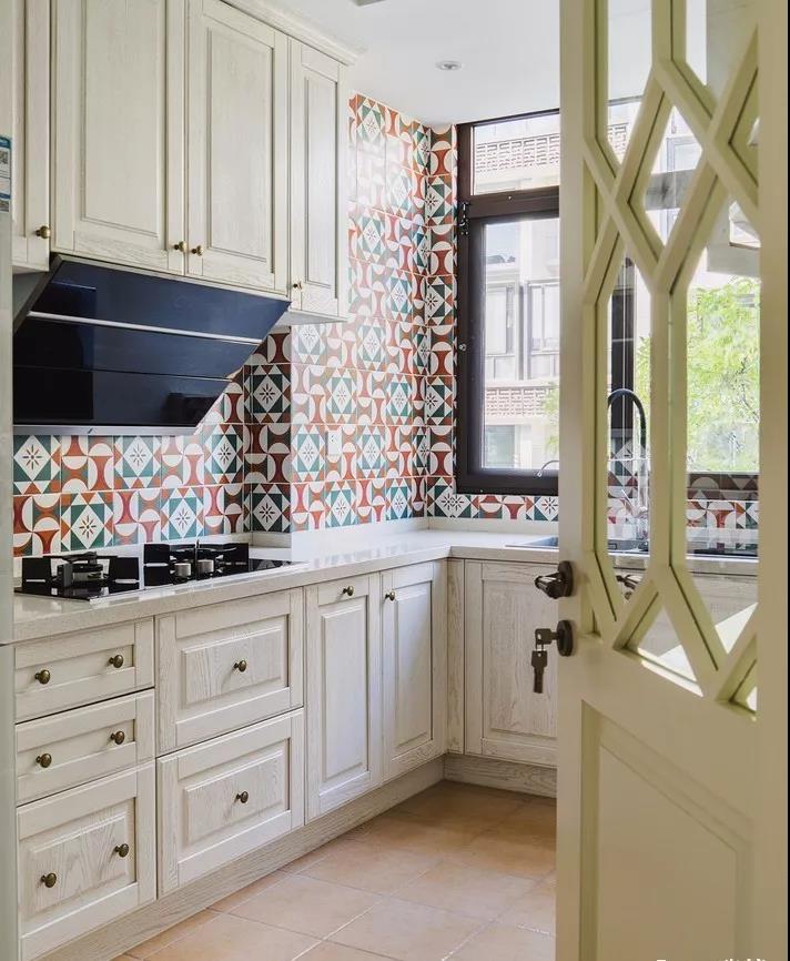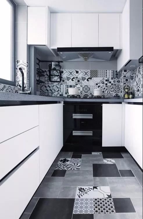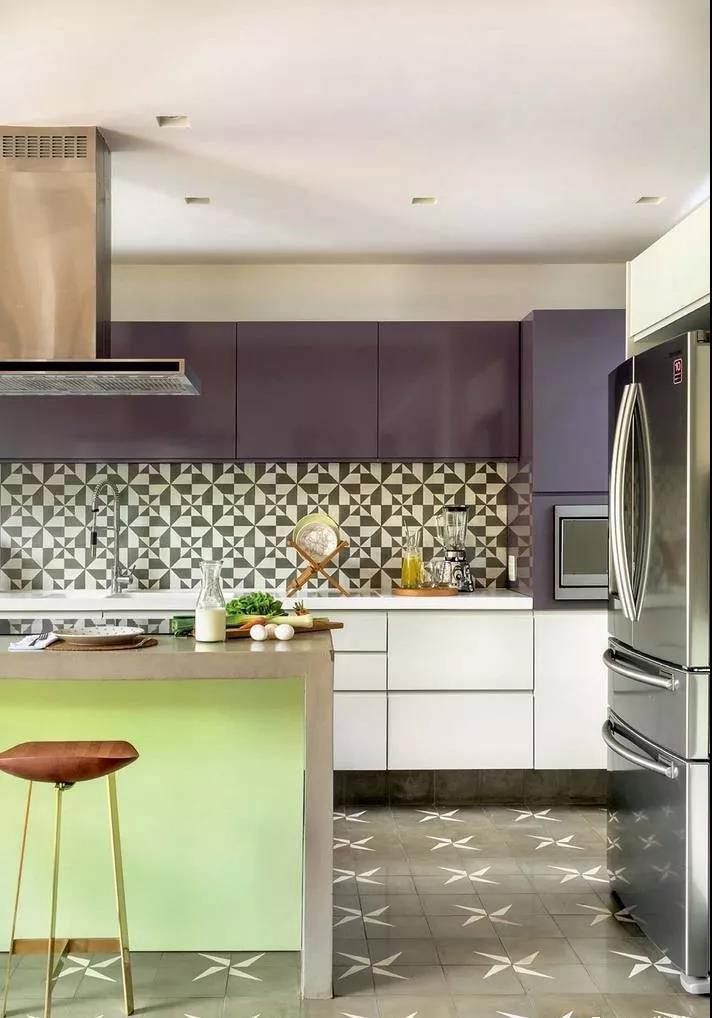 廚房的墻面一般比較單調(diào),實(shí)用性遠(yuǎn)遠(yuǎn)勝過了裝飾性,因而沒有太大的亮點(diǎn)。如果用花磚進(jìn)行裝飾,和其他單色磚形成一個視覺上的對比,或許就能輕松打造視覺焦點(diǎn)了。