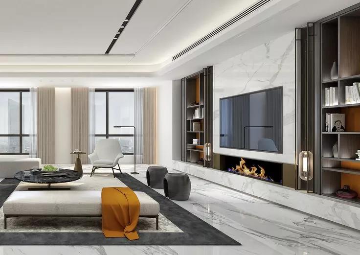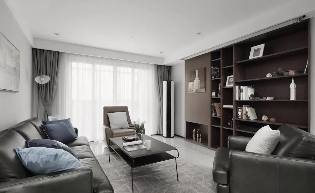 或留出幾個開放式展示柜,將相框、裝飾品、書籍?dāng)[放其中,讓客廳多了一份精致感,空間看起來也更加完整了。