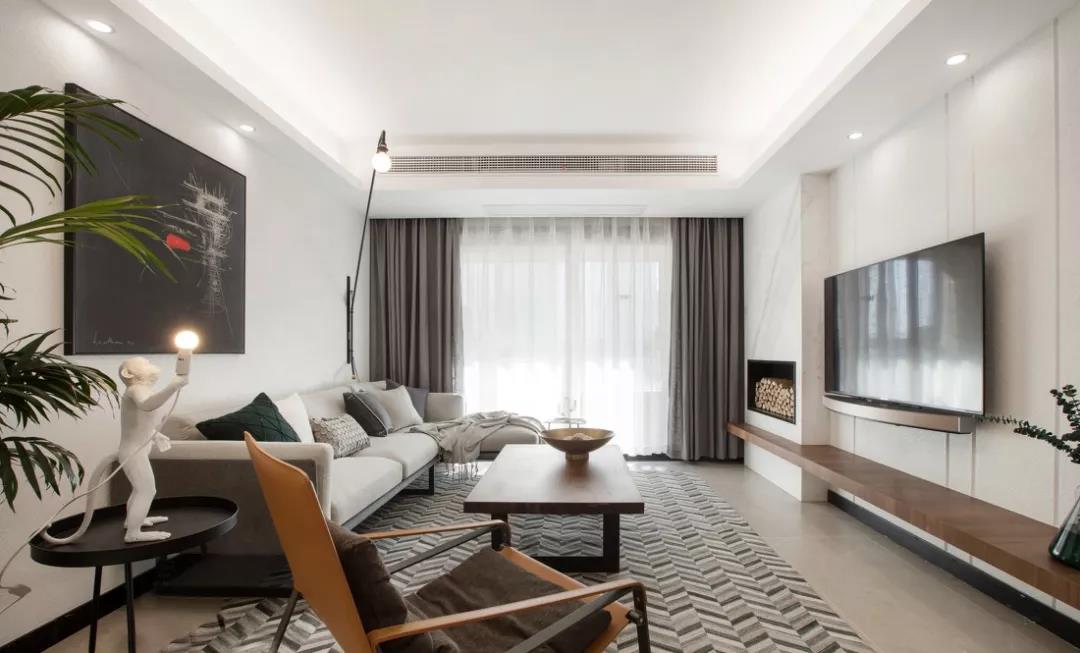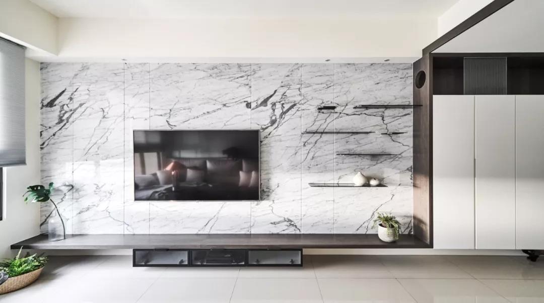 然而,隨著極簡主義思潮的風(fēng)靡,以及電視自身存在感的大大削弱,人們的家裝觀念也受到了一定影響,開始崇尚「去繁從簡」,不做繁復(fù)的修飾與設(shè)計,讓電視背景墻變得實用、美觀起來。