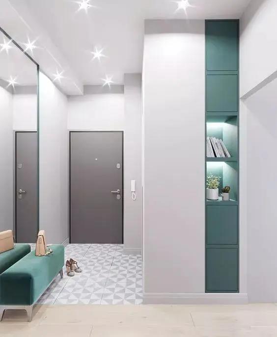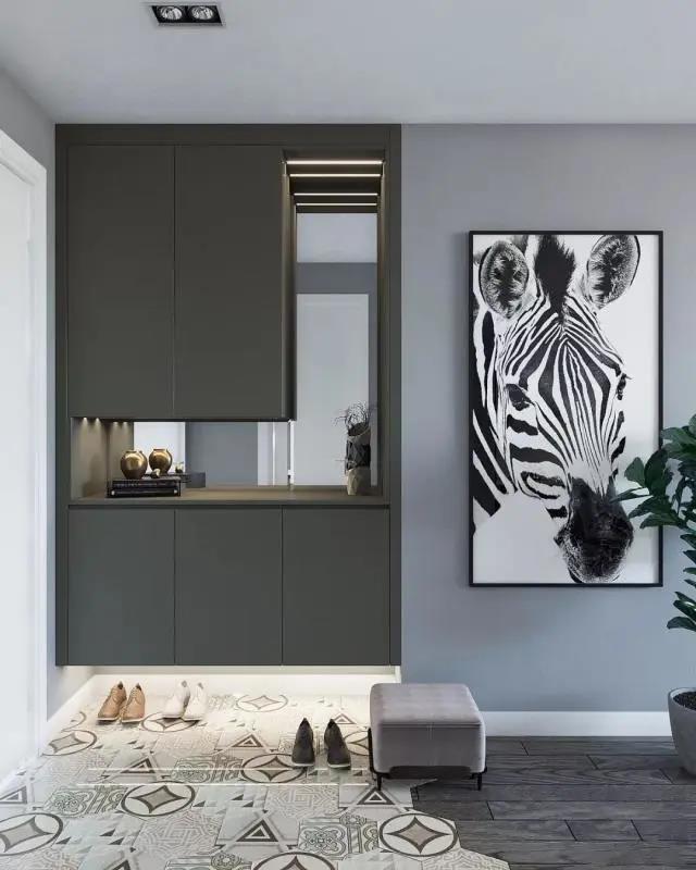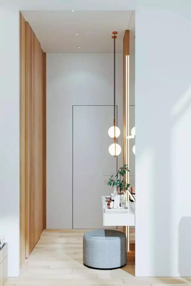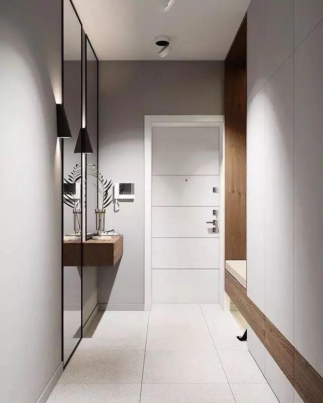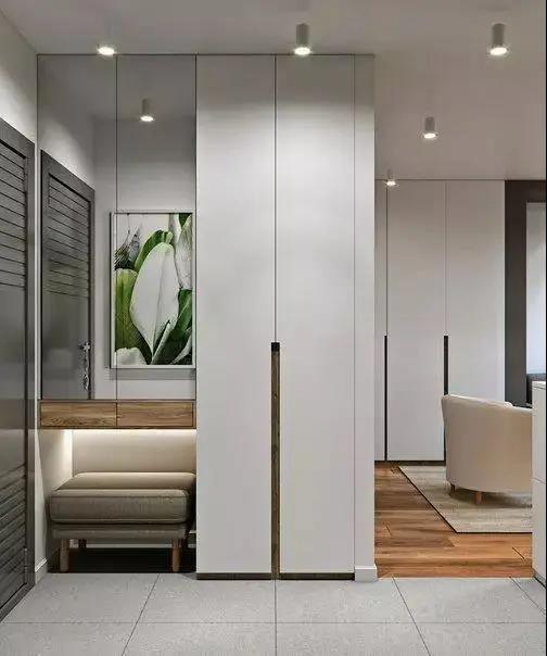 也可以在玄關(guān)安裝鏡子和梳妝臺(tái),這時(shí)最好安裝一個(gè)鏡前燈,方便業(yè)主和其家人進(jìn)出時(shí)整理妝容。