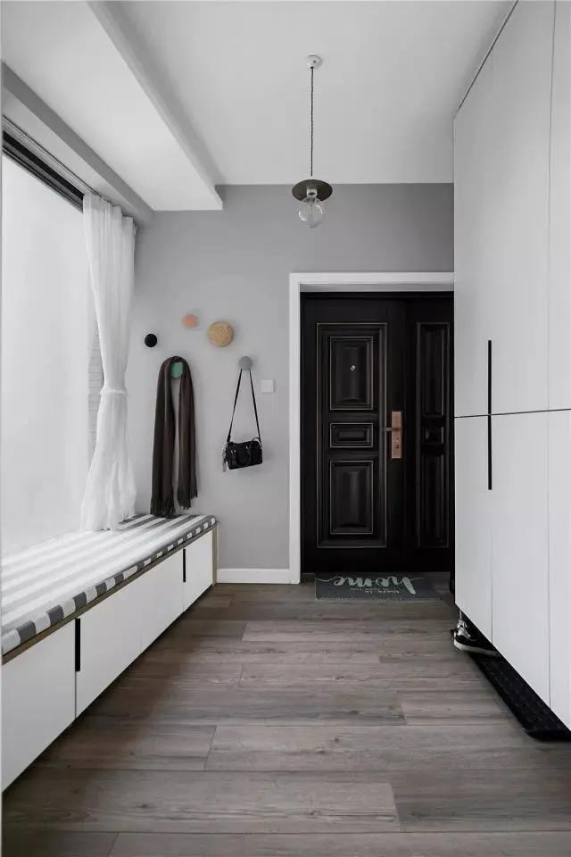 如果條件允許的話,可以選擇在玄關(guān)安裝卡座,優(yōu)點(diǎn)是它既能儲(chǔ)物,又有換鞋凳的功能,一物兩用。