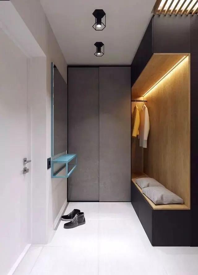 如果玄關(guān)昏暗,除了采用開(kāi)放式設(shè)計(jì)或引入光線之外,就是另外增加人工光源。例如在天花板安裝筒燈或者吊燈。