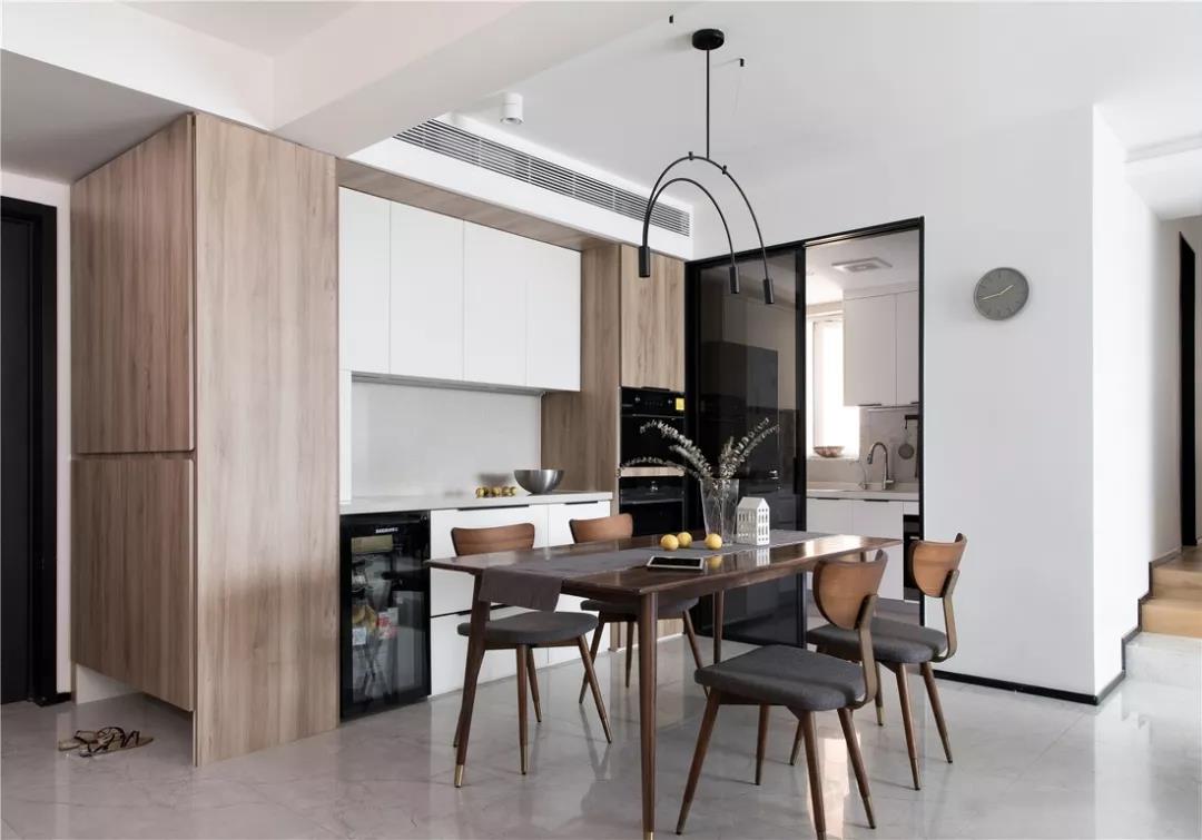 餐廳做整墻餐邊柜,延續(xù)西廚功能,一些簡單加工就能直接上桌的菜品點心,都能在這里完成啦~
