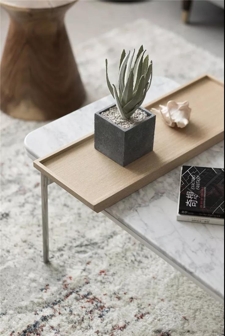 木質(zhì)地板從樓梯銜接,向休息區(qū)過渡。