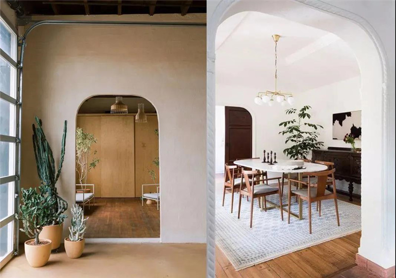 跟老式的門洞相比較,拱形門的設(shè)計(jì)視覺上能給人帶來更好的舒適感,還有延伸空間的作用。