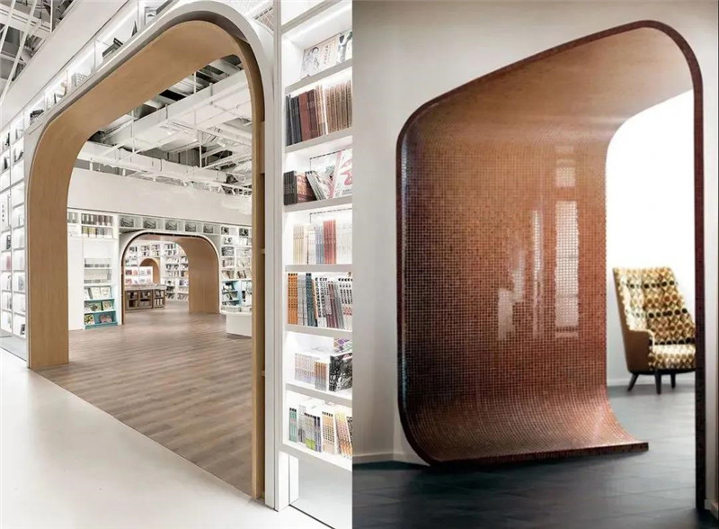 在細(xì)節(jié)方面尤其注意的就是收口,可分為是否包邊處理,兩種形式的視覺效果各不相同,包邊后的效果凸顯拱形門的邊緣和輪廓感,而未包邊顯得更加通透協(xié)調(diào)。