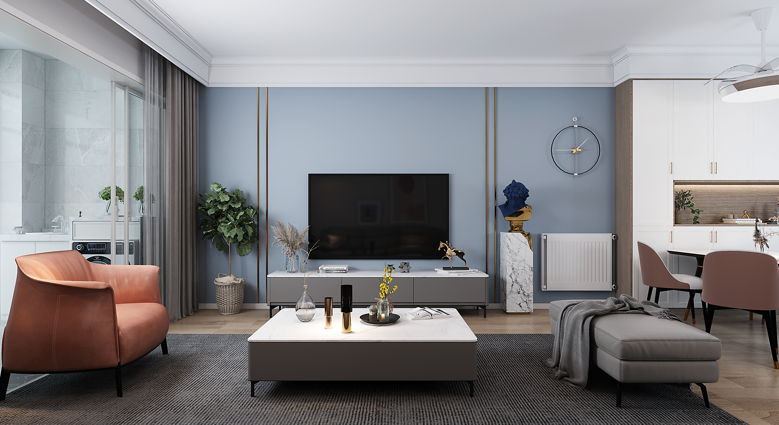 本次的案例是一對(duì)年輕小夫妻的新婚之家,設(shè)計(jì)師用深淺不一的藍(lán),在有限的空間布局內(nèi)去施展他細(xì)膩的思考,呈現(xiàn)理想生活的狀態(tài)