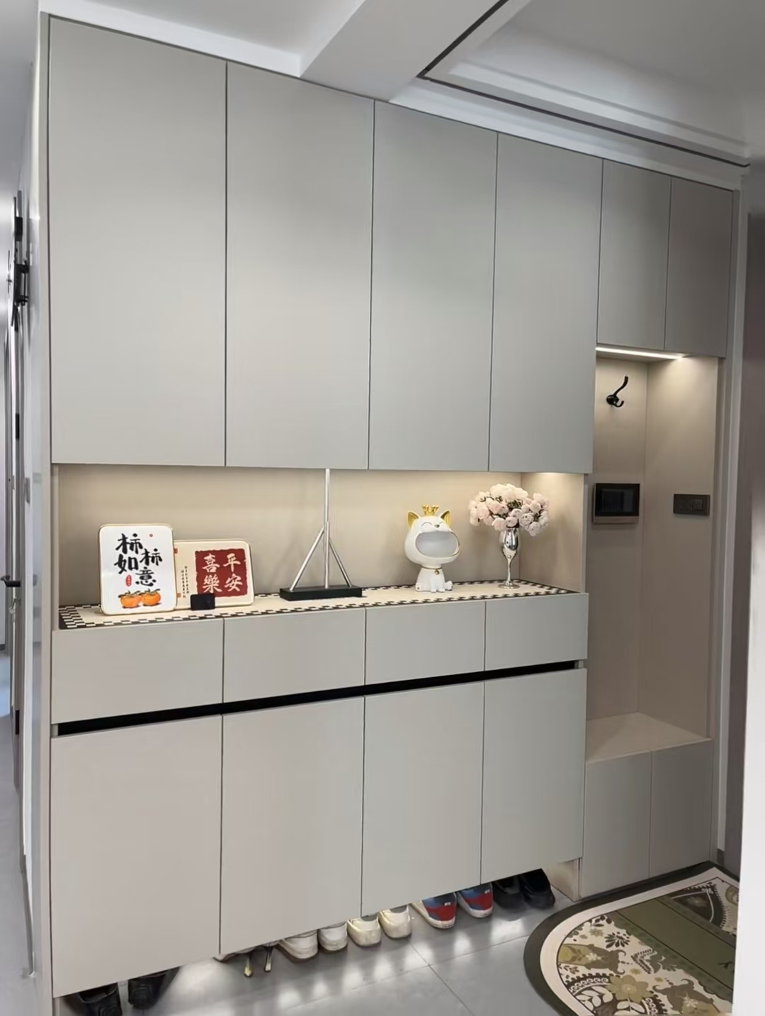 1.鞋柜柜體預(yù)留透氣孔如果鞋柜的柜門是平開(kāi)門或封閉式設(shè)計(jì),柜體一定預(yù)留透氣孔,可以在底部留一排透氣孔,這樣可以避免一開(kāi)鞋柜門有異味,帶來(lái)不好的感受。2.鞋柜底部