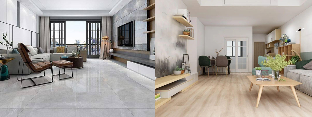 大家在裝修新房的時候都會考慮一個難題,不知道家里的客廳地面是貼木地板還是貼瓷磚